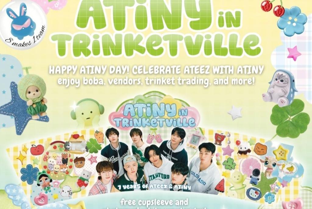 Join us in celebrating 7 years of Atiny and Ateez! bring your favorite trinkets along for a fun-filled weekend in Trinketville! π³π¦ Celebrate in Wisconsin on Sunday 11/23! This is a Kpop cupsleeve event to celebrate the 7th Anniversery of Ateez & Atiny! Enjoy KPOP vendors, raffles, trinket trading, Ateez-themed drinks and more! Each purchase comes with a free cupsleeve and a free photocard lucky draw!