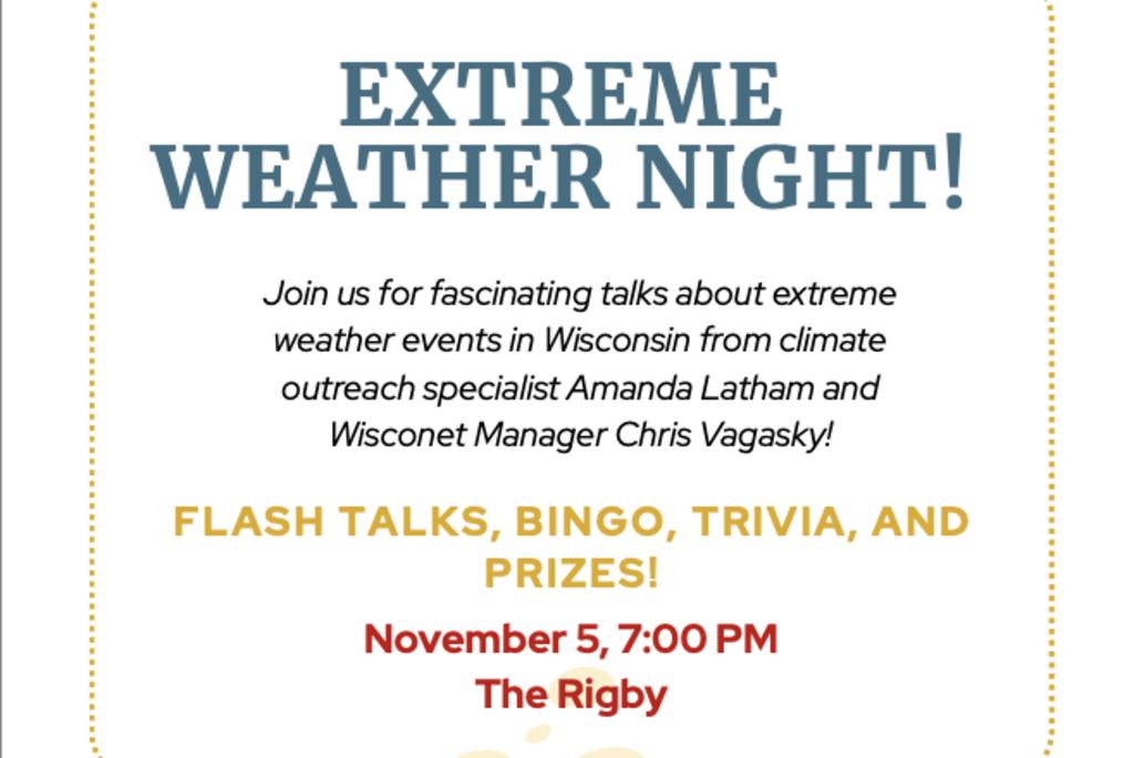 Join us at The Rigby on November 5 at 7:00 PM for an electrifying evening all about extreme weather! Hear from Amanda Latham, Climate Outreach Specialist, and Chris Vagasky, WISCONet Manager, as they share insights into the science, impact, and stories behind Wisconsin’s wildest weather events.