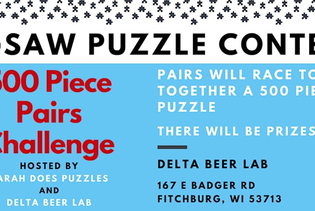 Each pair will receive the same puzzle concealed in a bag. No one will see the puzzle before the timer starts. After a countdown, pairs will open their boxes and start puzzling. A competition judge will monitor teams and record finishing times. Once you have completed your puzzle, you may leave, or stay and work on another puzzle and enjoy a drink or two!