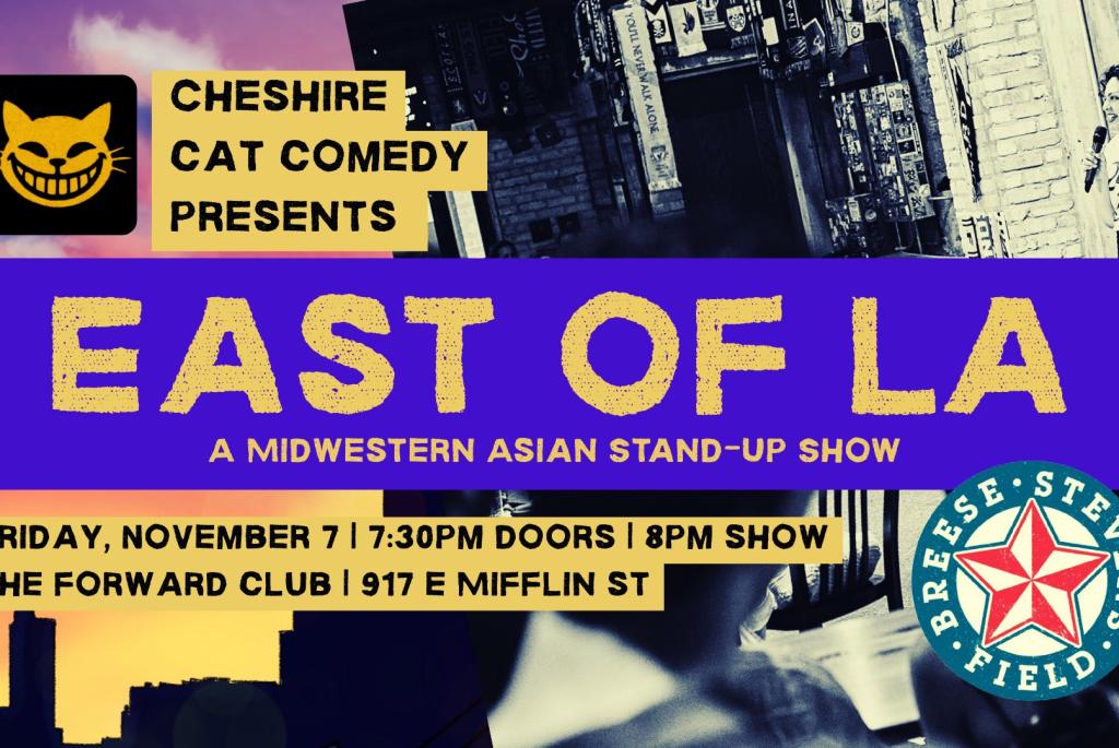 East of LA is a stand-up show that features Asian American comedians in the Midwest. Originally at the Lincoln Lodge Theater in Chicago, this show is coming to Madison for one night only to highlight Asian American comedians and their experiences in the Midwest and show those of us on the coasts that you don’t need to be near salty water to be funny.