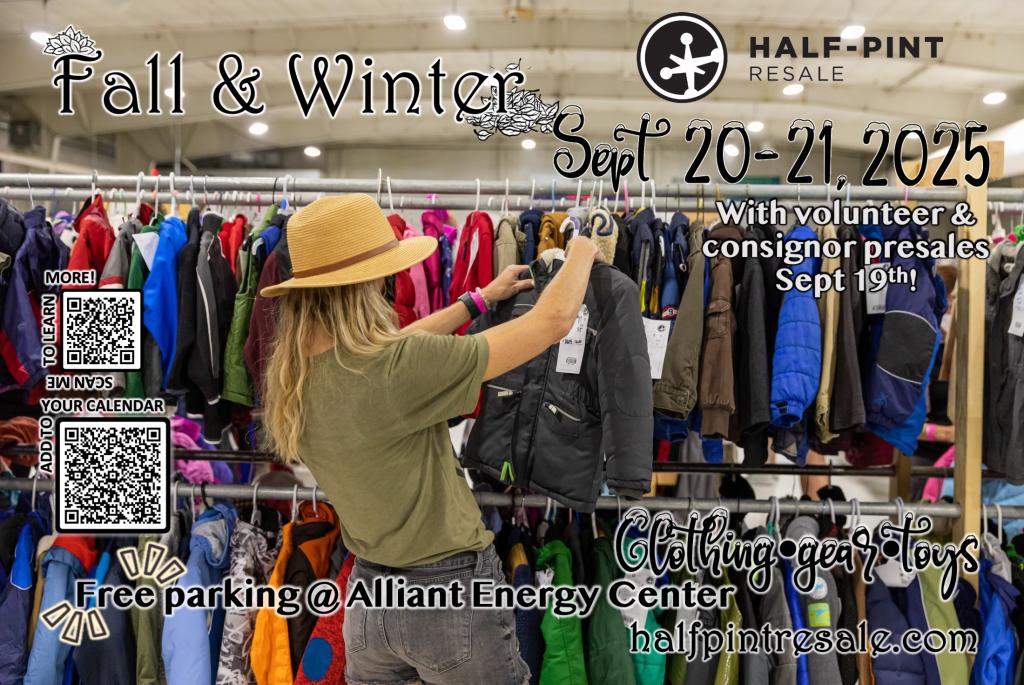 The Madison area’s largest children’s consignment sale, featuring tens of thousands of items for pregnant moms, expecting parents, and young families, featuring items of all types for ages 0 – 12, plus maternity. Register to consign your items, or volunteer to work the sale and get access to the presale held on Friday September 19. A half-price sale will be held on Sunday September 21 from 8am – 1pm. Put your clothing and money back into our community in this mom owned and 100% local sale. The sale will be held at the Alliant Energy Center's Arena building, with free parking!