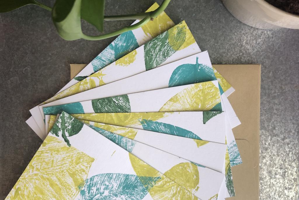 Handprinted Notecard Workshop: Leaves & Mushrooms!