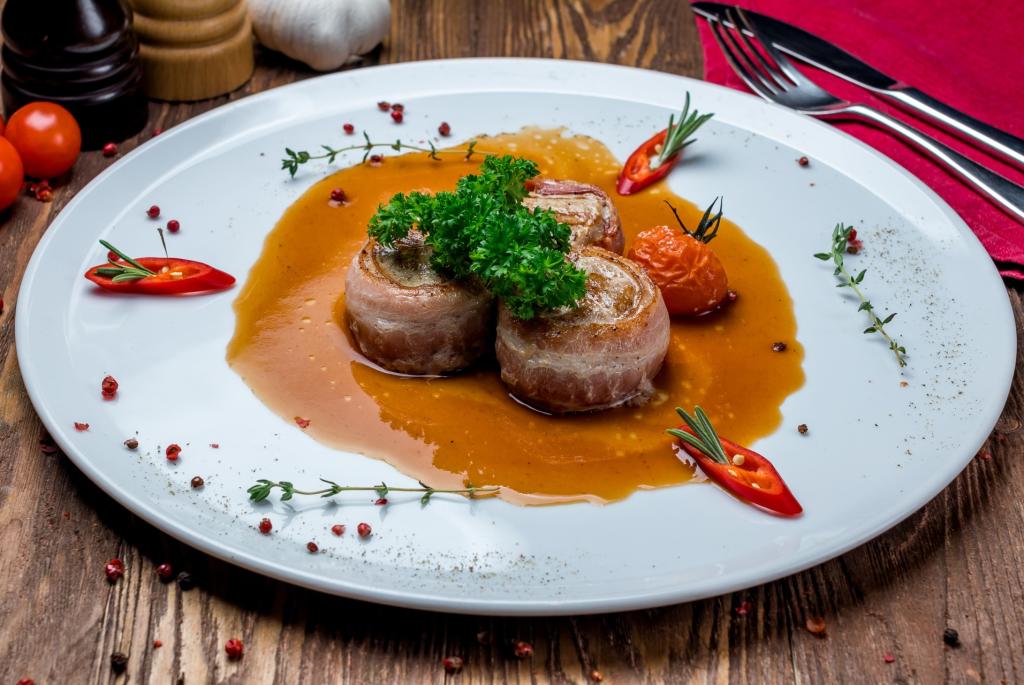 - Bacon-Wrapped Pork Tenderloin Medallions: The star of the show! Juicy pork tenderloin wrapped in savory bacon and smothered in a rich Mushroom Ragout. 🥓
