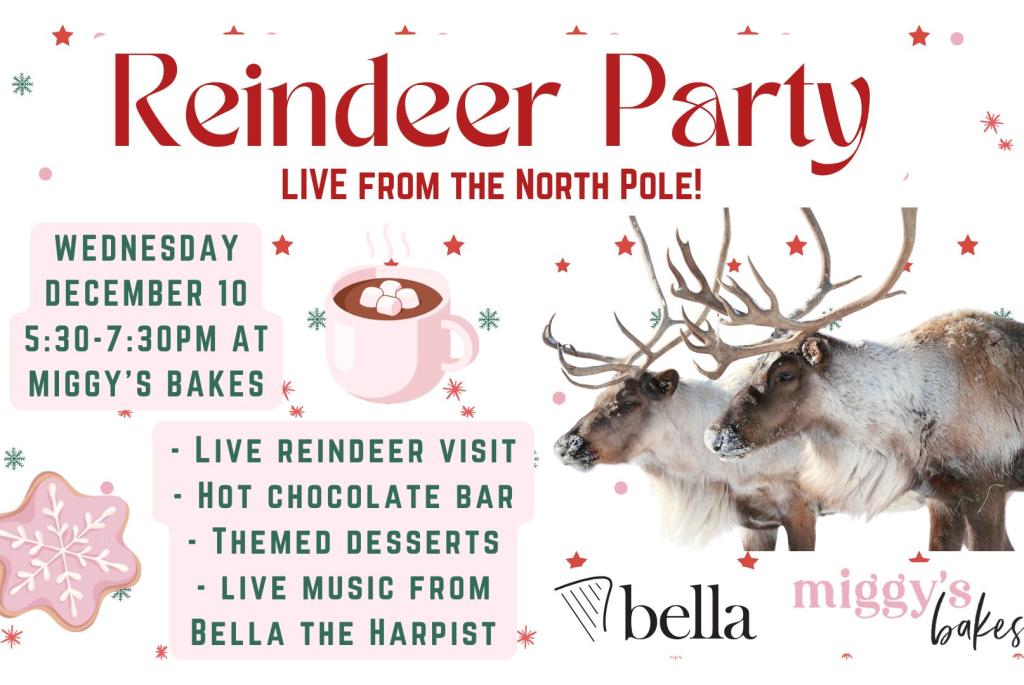 Come out to Miggy's Bakes on December 10, 5:30-7:30pm to see LIVE reindeer at the bakery!!