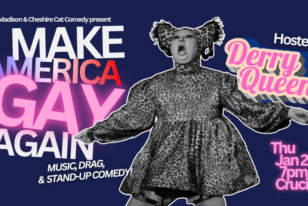 Best of Madison winner Cheshire Cat Comedy brings back its hit show with a scintillating lineup of queer stand-up and drag performers as they unite to MAKE AMERICA GAY AGAIN at Crucible Madison on Thursday, January 29.
