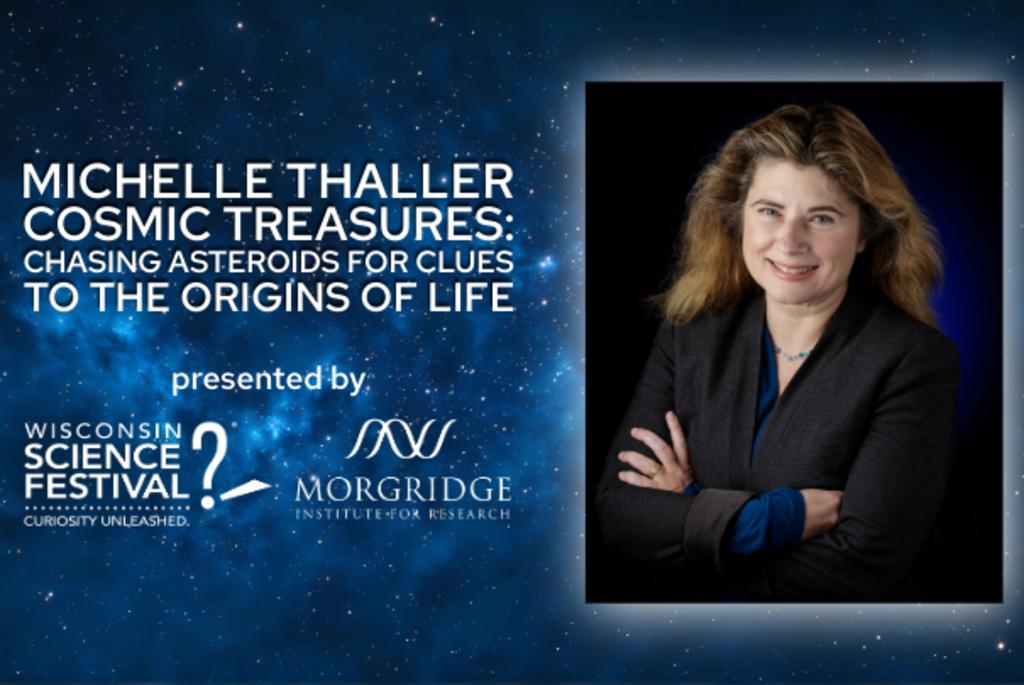 Join Michelle Thaller, former NASA science communicator, for an evening exploring the origins of life. Thaller, in conversation with Eric Wilcots, Dean of the College of Letters & Sciences and Professor in the Dept of Astronomy, will talk about the OSIRIS-REx mission – an audacious project to return a sample from an asteroid. No problem, right? Just chase down a small rock 200 million miles away, traveling literally faster than a speeding bullet, vacuum up a sample of its surface, and shoot it back to Earth. The story turned out to be more difficult, dramatic, and rewarding than anyone expected. Join us to find out why we went to so much trouble to bring back an ancient sample of our solar system and what was waiting inside that absolutely blew our minds.