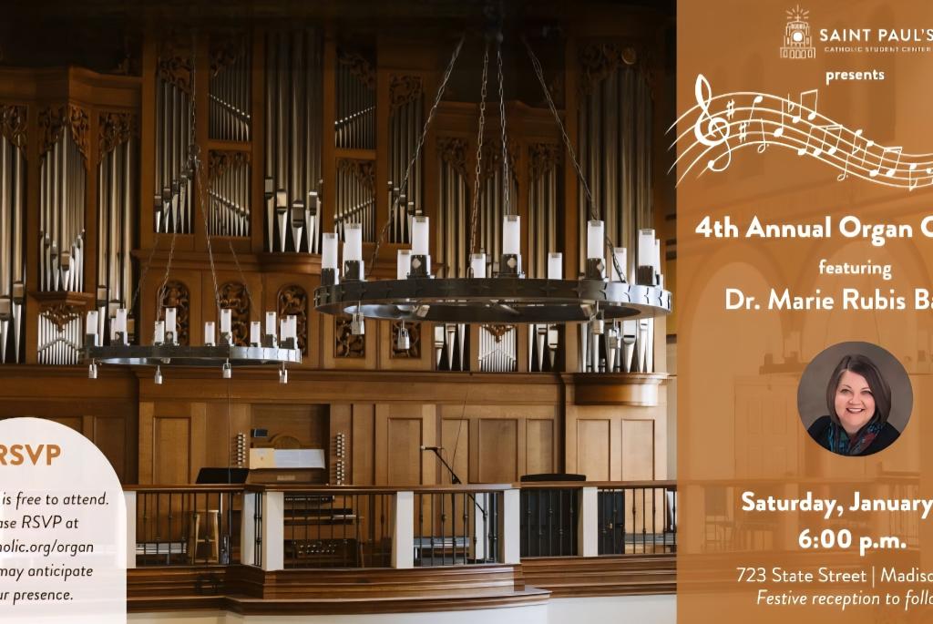 Upcoming organ recital at Saint Paul's Catholic Student Center on Saturday, January 31st, 2025.