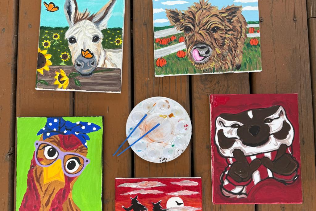 With your paint kit and easy-to-follow directions, you’ll bring your favorite subject to life, brushstroke by brushstroke —whether it’s our sweet mini donkey, a fluffy Highland calf, whimsical witches, a charming chicken, or a cheering Badger.