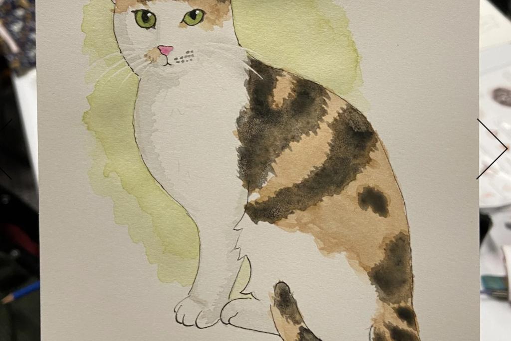 Learn how to paint your cat using watercolors! We will start by outlining our cats with a black, waterproof pen and then layer on colors using a wet on dry technique. At the end, we will add a colorful background using a wet on wet technique.