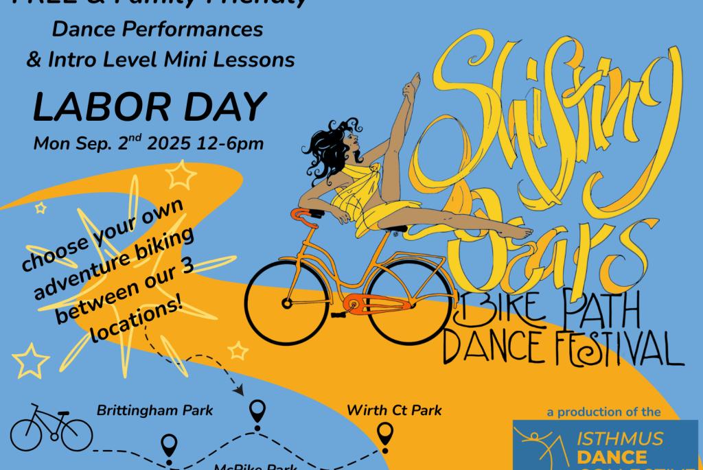 The Shifting Gears Bike Path Dance Festival is back, and with more exciting ways to enjoy Madison’s vibrant local dance scene. Grab your bike, your scooter, roller skates, or just put on your favorite walking shoes! This year’s festival brings you new interactive activities and new appreciation for our beautiful city.