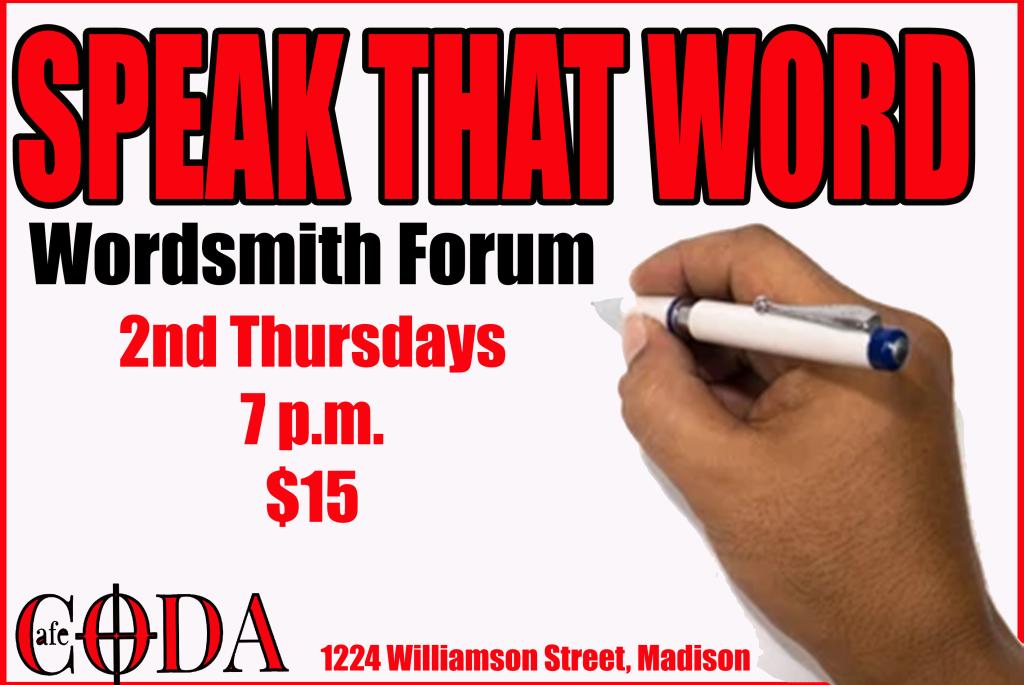 Speak That Word Writer's Forum. Where Poets, Wordsmiths, and Storytellers gather and share while listeners can appreciate the words of our people and our town.