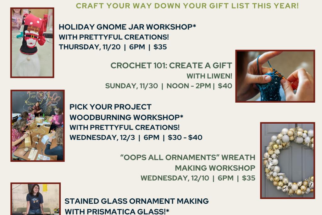 Choose your template on our registration website - Candy Cane, Pine Tree, or Vintage Ornament. Then at the event on Wednesday, December 17th, Molly will teach you how to foil tape the pieces of pre-cut glass and then solder them together. This intro to Stained Glass is open to guests 18 and up, perfect for a date night or evening to make a Holiday Gift! Spots are extremely limited - sign up today!