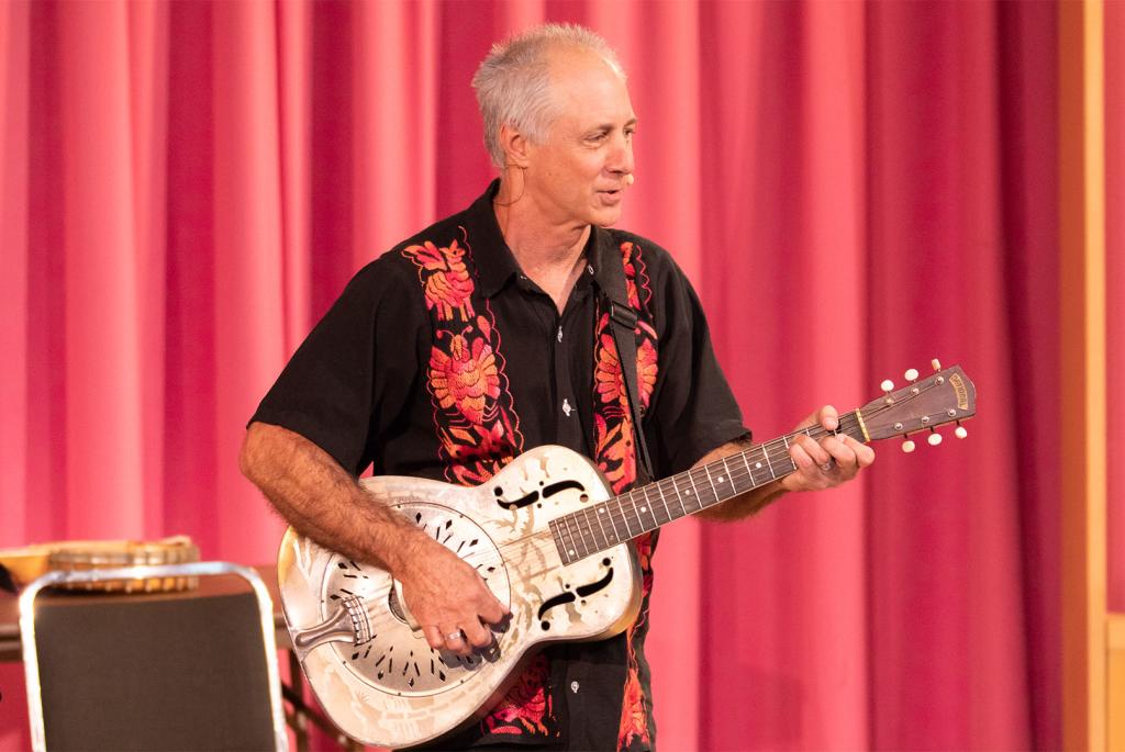 Stuart Stotts is an energetic singer and storyteller who loves engaging audiences. In a family-friendly setting, you'll find yourself singing, moving, sharing ideas and laughing together. Stotts plays guitar, banjo and water drum, and always includes a folktale to deepen the sense of connection and let audiences experience the magic of storytelling.