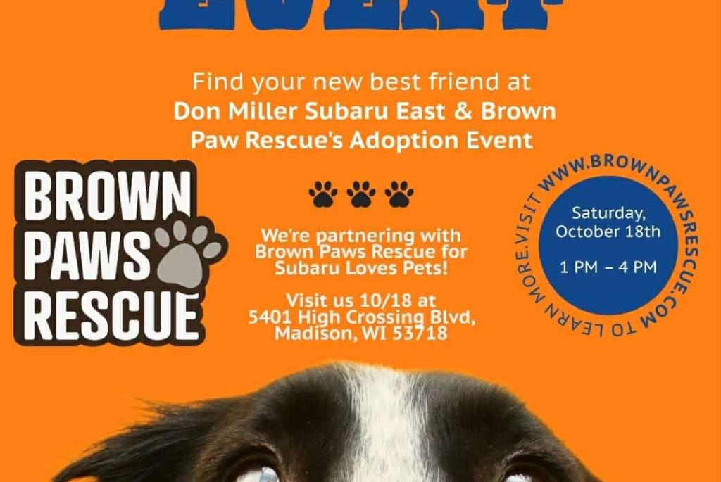 The first 31 adoptions will get a $100 of their adoption fee. All adopters need to be preapproved. So, if you are thinking of adopting a dog, please go to brownpawsrescue.com and fill out an application for the dog you are interested in or under our blank Application Subaru loves pets. If you are preapproved and you and the foster parent agree that it's a good fit, you can take your dog home that day! -