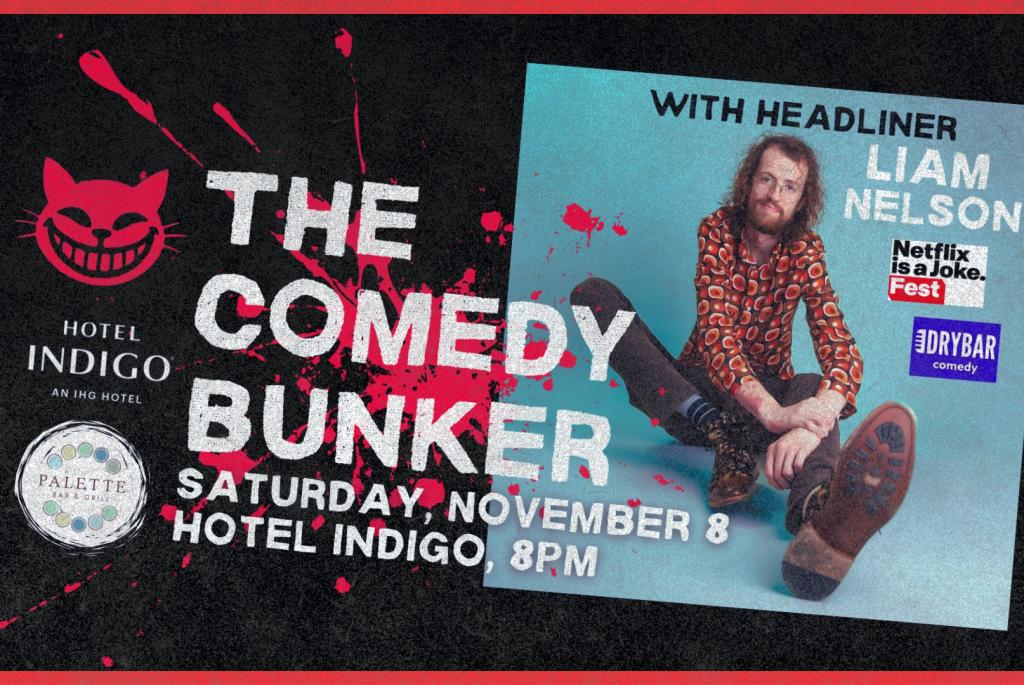 Cheshire Cat Comedy presents The Comedy Bunker: an intimate show that brings together a hilarious lineup of touring and local stand-up comedians in downtown Madison at Hotel Indigo, a former paint factory-turned historic hotel. Patrons are encouraged to start their evening with a pre-show dinner at the Palette Bar & Grill adjacent to the hotel lobby. Palette is offering a special deal for showgoers: Get a free drink (beer, wine, or Palette cocktail) with the purchase of an appetizer when you show your ticket for the event!