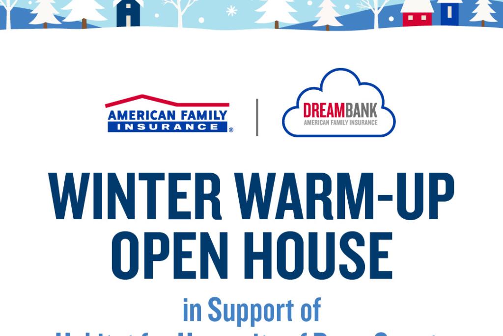 Start the new year with warmth, connection and meaningful impact! You and your family are invited to a cozy Winter Warm-Up celebration with the American Family Insurance DreamBank, supporting Habitat for Humanity of Dane County. Join us for an open house that brings our community together for a lively evening filled with seasonal fun, delicious treats and refreshments from local favorites, plus a winter-inspired DIY house craft for a cause.